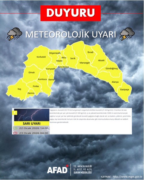 AFAD ve meteoroloji kaynaklarından aldığımız son bilgiye göre, ilimiz genelinde kuvvetli yağışlı bir sistemin etkisine giriyoruz.